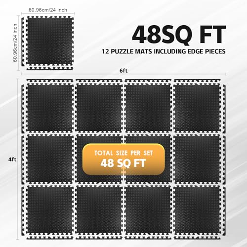 【EASY ASSEMBLE】Foam mat with Lightweight puzzle pieces can be connected and disassembled easily and quickly, Great for the home gym, fitness gym , garages coverage or Home play areas.