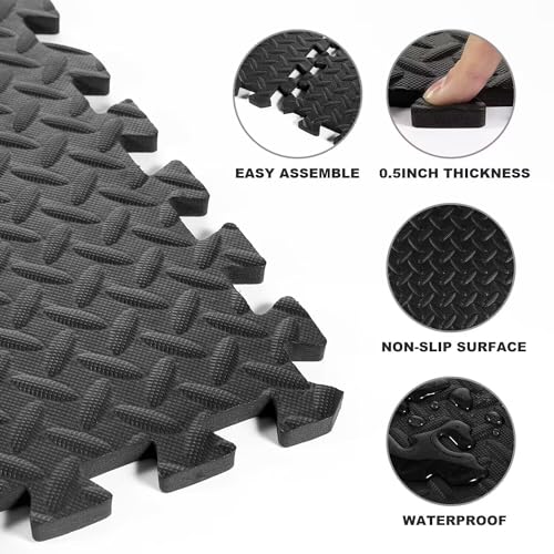 DOOHALO Puzzle Exercise Mat,Protective Gym Flooring Mat 60cmx 60cm,Non Slip Rubber Floor Cushions,EVA Interlocking Foam Tiles Mats,for Home Fitness,Sport,Yoga,Workout