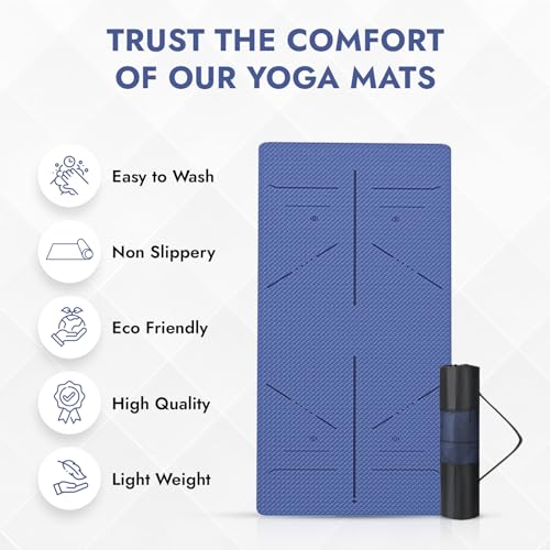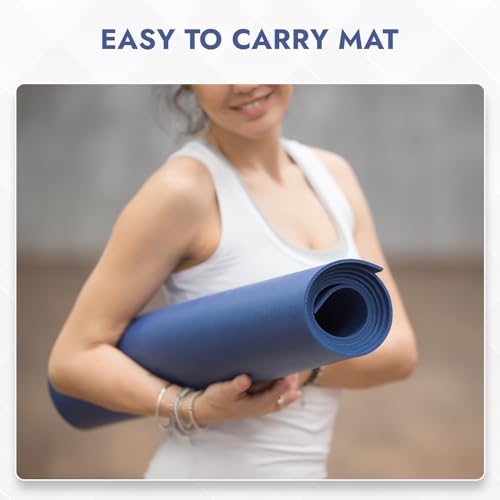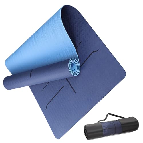 DOUBLE-SIDED MAT FOR ADAPTABILITY: This non-slip yoga mat has a double-layer build that provides improved grip, good cushioning, and a non-slip texture on both sides. The yoga matt is suitable for a variety of yoga practices and remains secure on wood, tile, and cement floors. This lightweight exercise mat is great for pilates and fitness routines..
