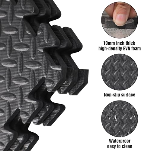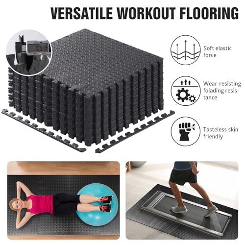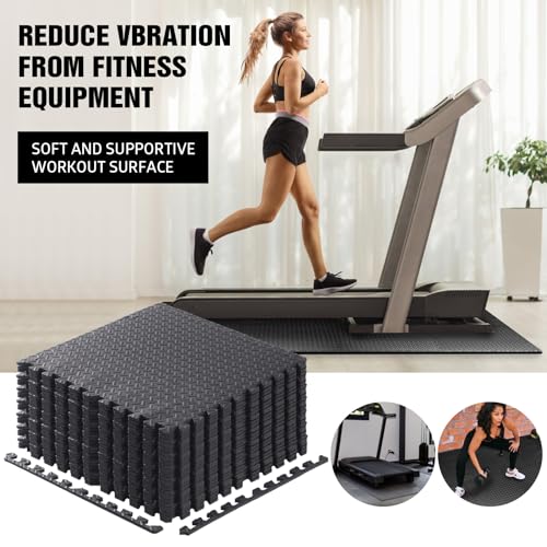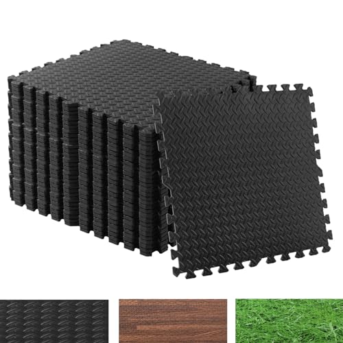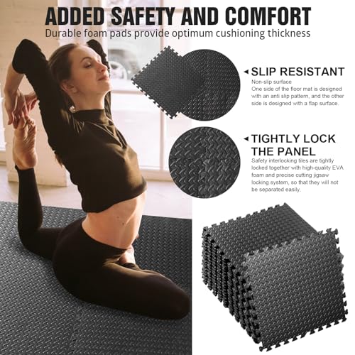 Sports Thick Mat Gym Flooring Mat, Foam Exercise Mats, Soft Cushion Non slip Rubber foam, Interlocking Puzzle EVA Floor Tiles, for Home Yoga Workout, 60x60cm (24pcs(96 sq.ft), black)