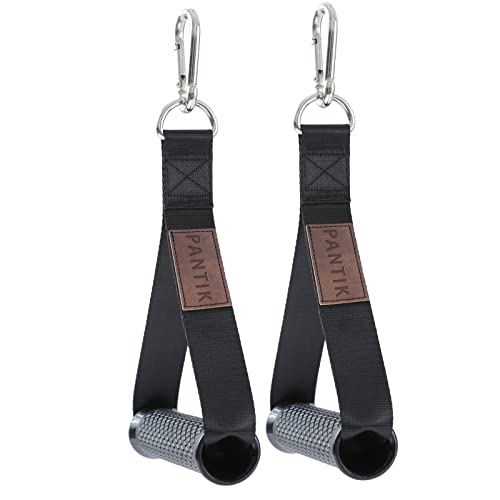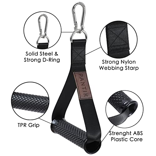 PANTIK Exercise Handles Heavy Duty Cable Machine Attachments D Handle Resistance Band Handles for Fitness Nylon Strap Silicon Grip Solid ABS Cores with Carabiners for Home Gym Set of 2