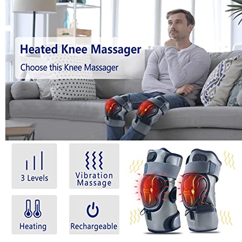 Heated Knee Massager Rechargeable – HONGJING Cordless Knee Massage Wrap for Arthritis Joint Pain Relief, 3 Adjustable Vibration & Heat (1 Pair), silver
