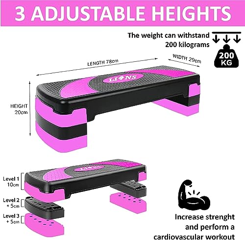 【3 LEVEL Adjustable Height】: Choose from three height levels for different workout and resistance styles. With a maximum height of 22cm, the step decreases by 5cm each time you remove a level. Standard size for first level is 12cm.Length of Platform- 70cm and Width of Platform- 25cm (9.8inch)