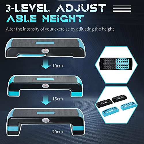 ADJUSTABLE HEIGHT: Comes with four platforms to adjust the stepping level (10cm, 15cm and 20cm). This fitness step is suitable for cardiovascular training.
