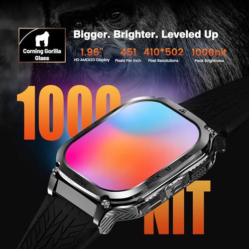 Military-Standard Quality – KOSPET TANK M3 features 1.96 inch second generation Corning Gorilla screen. As the first 9H twin glass cover, it’s strong enough to deal with a range of screen-destroying behaviors. The TC4 titanium unibody and the exclusive developed two-color silicone rubber is the world’s first two-color integration in smart watch; military-grade materials and fully enclosed design makes it the toughest and sturdiest watch. Successfully passed 12 Military Tests, Including extreme temperature,dust resistance, salt spray, fluid pollution,etc. Certified to MIL-STD810H , M3 smart watch for men ensures that you use them confidently in a variety of harsh conditions.