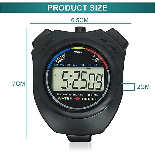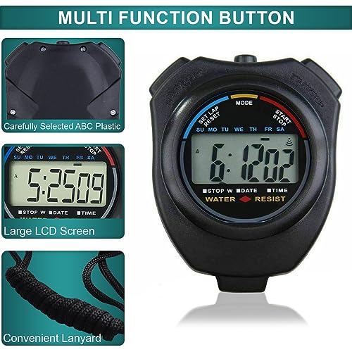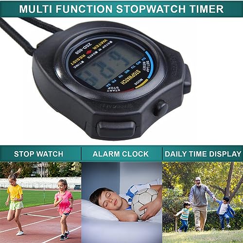 Digital Water-Proof Stop Watch, Multifunctional Sports Stop Watch for Swimming, Running, Basketball and Football, LCD Display Chronograph with Alarm Clock (Black