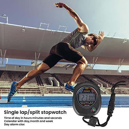 【Stopwatch Large LCD Display】Sports stopwatch timer high-definition digital display, easy to read, the stopwatch can display calendar and clock, hour, minute, second, week, month, day, selectable 12/24 hour. sport stopwatch is small in size and light in weight, portable, which comes with a lanyard in appropriate length, it can be easily hung around the neck, or the rope can be rolled around the arm.
