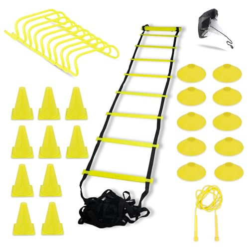 Agility Ladder : Ideal for athletic training, football, soccer, basketball drills, hockey, lacrosse, tennis, badminton, rugby to increase acceleration, leg strength, and speed, core skills, balance, rhythm, and body control.