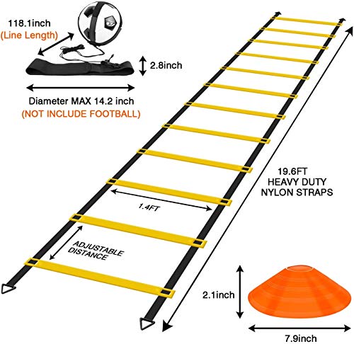 KIKILIVE football Speed & Agility Training Set,Premium Agility Ladder and Cones,Resistance Running Parachute,Sports Cones,Metal Pegs & Carrying Bag,training belt,Sports armband