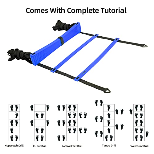 Ohuhu Agility Ladder Training Set – 12 Rung Speed Ladder with 12 Field Cones and 4 Stakes, Footwork Equipment for Soccer Football Drills (Ladder Set With Tutorial)