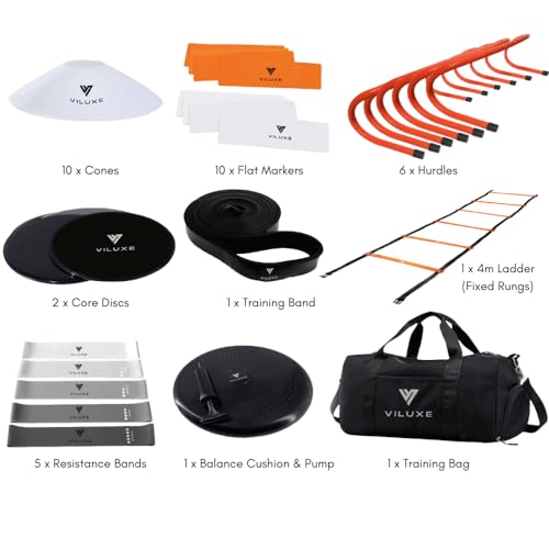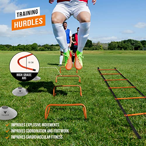 VILUXE Advanced Fitness Training Set | 8 Training Tools | Speed & Agility Ladder & Cones, 6 x Resistance Bands, 6 x Hurdles | Sports/Football/Gym | Suitable for Children & Adults