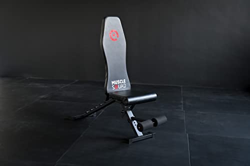 MuscleSquad Adjustable Utility Dumbbell Bench | Multi-Position Folding Weights Bench (Folds Flat) | No Tool Assembly Gym Bench