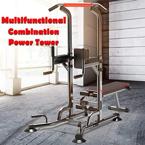 All-in-One Power Tower Dip Station,Height Adjustable Strength Workout Pull Up Bar Fitness Weightlifting Rack Dip Stand with Barbel
