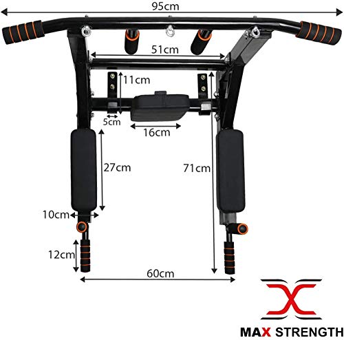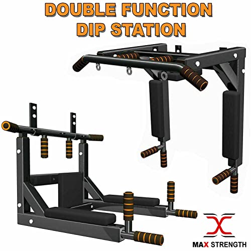 MAXSTRENGTH Multifunctional Wall Mounted Pull Up Bar/Chin Up bar, Dip Station for Indoor Home Gym Workout, Training Equipment Fitness Dip Stand Exercise Support