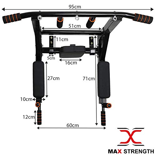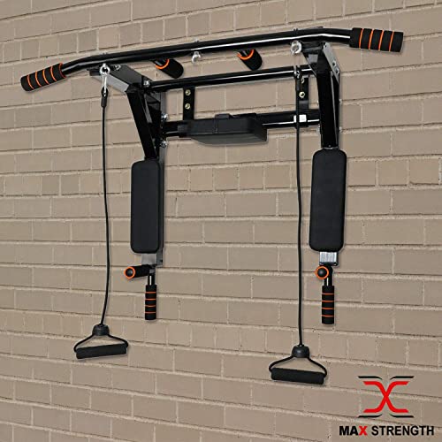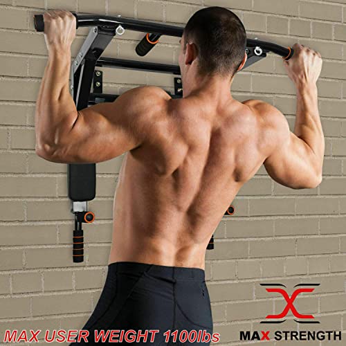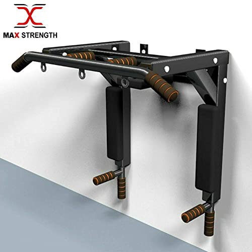 MAXSTRENGTH Multifunctional Wall Mounted Pull Up Bar Dip Station Chin Up bar Full Body Workout Bar Heavy Duty Training Equipment Fitness Non-Slip Handles Dip Station for Indoor