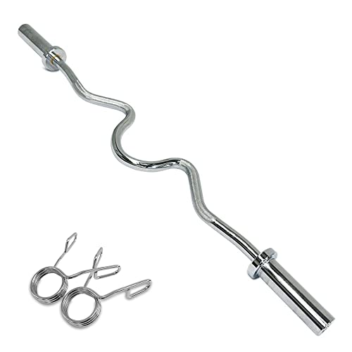 Body Revolution EZ Olympic Barbell Bar – 4ft EZ Super Curl Weight Lifting Bar for 2 Inch Weight Plates – Barbell for Bicep Curls and Bodybuilding – Spring Collars Included