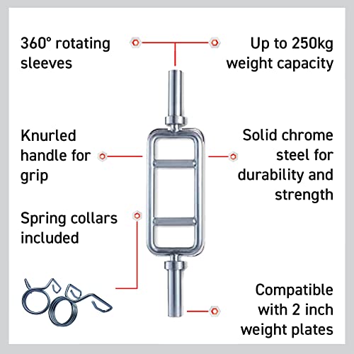 WEIGHTLIFTING BARBELL BAR – Made of durable, heavy-duty solid chrome steel with a weight capacity of 120KG. This Hammer Curl barbell bar includes spring collars.and weighs 10kg