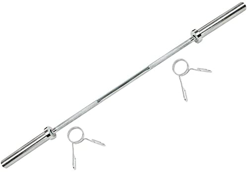 MAXSTRENGTH Weight Lifting Barbell Bar 2 Inch With Spring Lock Collars Chrome, Anti-Slip Hand Grip, Solid Steel, Gym Equipment Bodybuilding Workout Fitness Training Heavy Duty Exercise 4ft, 5ft, 6ft, 7ft