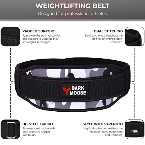 DARK MOOSE Weight Lifting Belt Training Contoured Back 5.5 Inch Weight Support Lower Bicep Supports Men Women Neoprene Padded Double Strength Fitness Gym Belts Squats Deadlifts Heavy Lifting