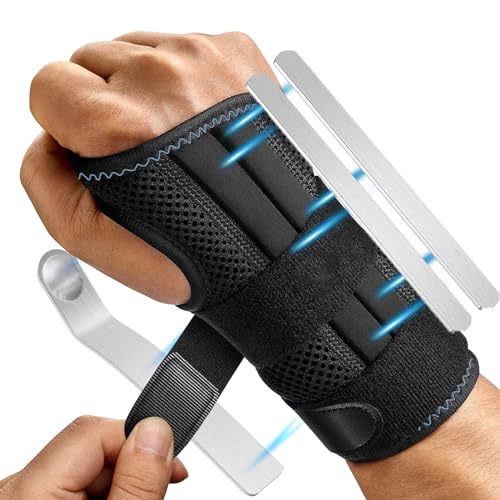 YivnuioL Wrist Support with 3 Metal Splints, Day Night Carpal Tunnel Wrist Splint for Men Women, Wrist Splint for Tendonitis Arthritis Pain Relief, Sprained, Sports Protect (Left, M)