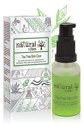 Natural Vibes Tea Tree Acne Face Serum | Clears Blemishes, Dark Spots, Acne Marks/Scars, Brightens Skin & Adds Glow | Ayurvedic & Vegan | 30 ml | For Men & Women | All Skin Types
