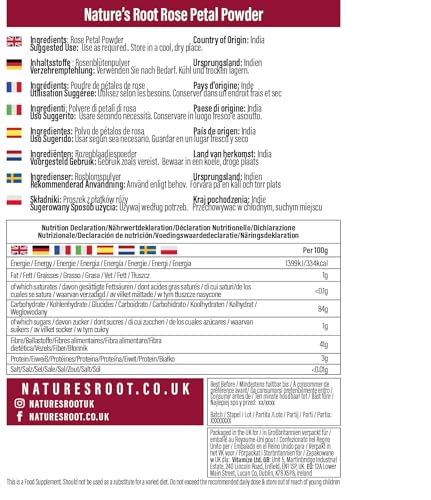 REJUVENATING AND MOISTURISING: When applied directly to the skin, Rose Petal Powder exfoliates and cleanses without stripping the skin of its essential oils. It nourishes to restore moisture levels, brightens the complexion, and reduces the appearance of fine lines and wrinkles.