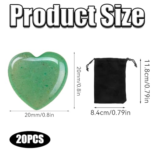 20 Pcs Healing Crystals Natural Heart Stones Set Crystals and Gemstones Healing Crystal Gifts and Gemstones with Storage Bag for Beginners Stress Relief Meditation Yoga, Healing Gifts