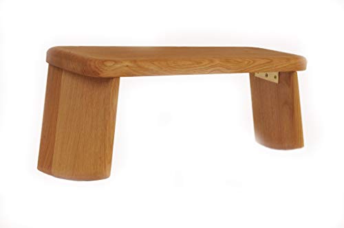 My meditation stools are all handcrafted using English oak from sustainable sources often from our own woodland. For the finish I have used Linseed oil which allows the beauty of the grain to shine through. The legs and attached with a set of good quality, hinges that will give many years of use. The legs are also angled outwards so that they are not able to fold in on themselves and are rounded at the base so that you can rock into a comfortable position. The stool is designed to let you sit (kneel) in a position that keeps the spine and back straight. This enables the user to meditate in a comfortable position with the body relaxed so that the mind is free to focus without distractions. Body weight is supported by the stool rather than the knees and this allows for long periods of uninterrupted meditation without discomfort and more importantly distraction. The folding legs also allow easy transport and storage. The dimensions of the stool are: The seat is 46 cm or 18 inches in length. Height is 19 cm at the back sloping to 17 cm at the front. Weight varies between 1.8- 2.2kg or 4 and a half to 5 pounds. I am more than happy to customise height and other dimensions as required.