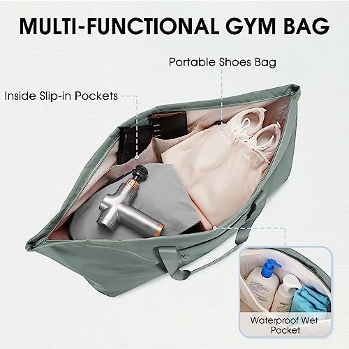Portable Shoes Bag and Zippered Wet Compartment: This gym bag comes with a portable shoe bag and a zippered wet compartment, providing separate storage for an extra pair of shoes and wet toiletries or swimwear. This smart design prevents other items in the bag from getting wet or dirty.