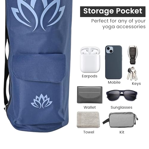 TJC Portable Yoga Mat Bag with Adjustable Shoulder Strap and Storage Pockets Yoga Mat Carry Luggage Pliates Gym Exercise Mat Bag Durable Lightweight Washable Travel Size 70x20x1 Cm