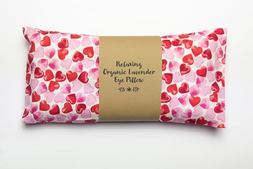 Organic Lavender Yoga Eye Pillow | Weighted with Flaxseed | Acupressure and Aromatherapy Meditation Pillow for Relaxation | Hearts Fabric (Rose & Hubble) 100% Cotton