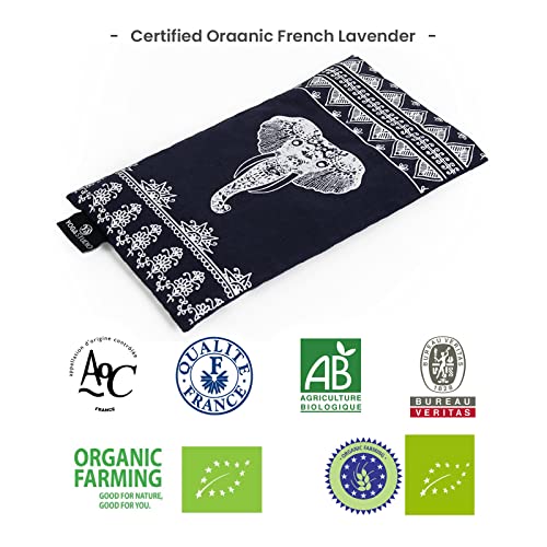 Yoga Studio Organic Eye Pillow – 23cm x 12/13cm, Organic Lavender & Linseed Scented Yoga Pillow for Tired Eyes, and Headaches (Navy Blue Aztec Elephant)
