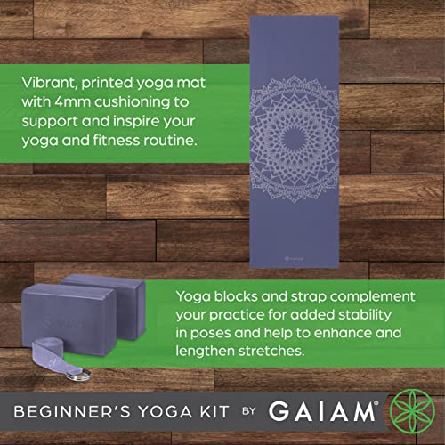 Gaiam Beginner’s Yoga Starter Kit Set (Yoga Mat, Yoga Block, Yoga Strap) – Light 4mm Thick Printed Non-Slip Exercise Mat for Everyday Yoga – Includes 6ft Yoga Strap & Yoga Brick