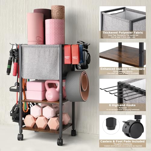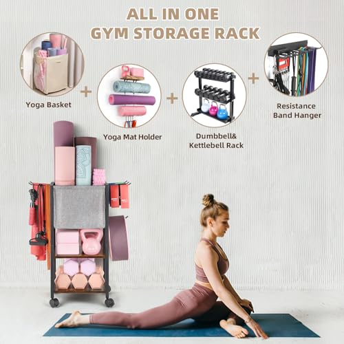 🧘♀️Store Various Gym Equipment Rack: The fitness equipment storage rack combines a yoga storage basket, a home gym equipment storage rack and a resistance band hanger. It can store yoga mats, foam rollers, yoga bolsters, small exercise balls, yoga blocks, dumbbells, kettlebells, resistance bands, yoga straps, pilates bars, jump ropes, yoga wheels, weighted hula hoops, water bottles, yoga towels, and more fitness equipment.