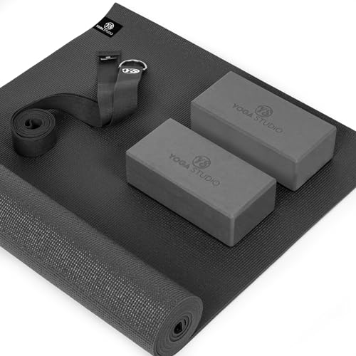 Yoga Studio Oeko-Tex Starter Yoga Set, Yoga Mat, 2 x EVA Yoga Bricks and Yoga Strap for Home, Gym, Yoga Training