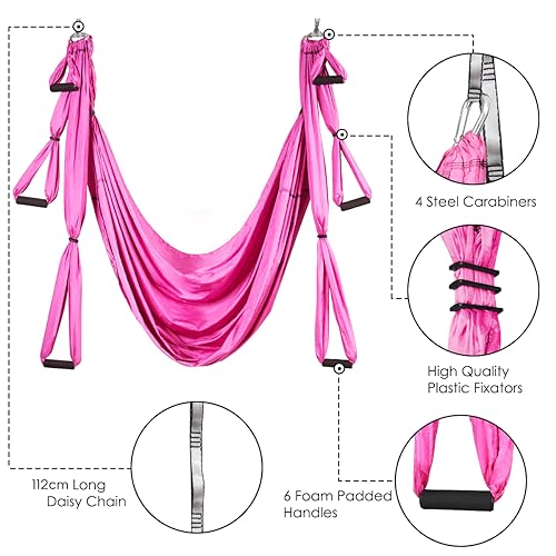 【High Quality Material】 This yoga swing is made of high quality 210T nylon cloth, which has the advantage of higher wear resistance and good elasticity compare to than other materials. It is lightweight and good air permeability with excellent durability.