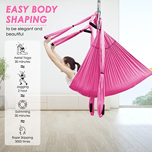 COSTWAY Aerial Yoga Swing Set, Antigravity Yoga Hammock with Carry Bag, 4 Steel Carabiners, 6 Handles, Professional Yoga Flying Strap Sling