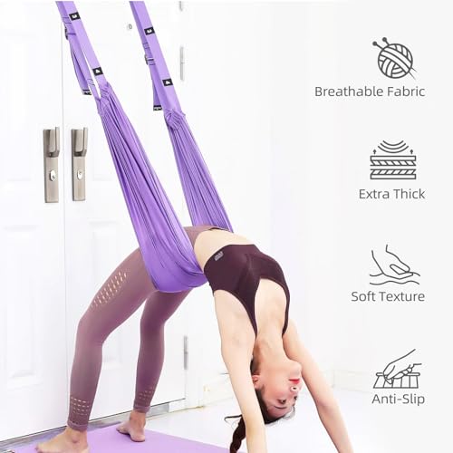 Portable and User-Friendly – The aerial yoga strap comes with a door anchor, eliminating the need for drilling holes. Installing the door anchor takes only seconds, and it can withstand a maximum tension of 660 pounds. Please ensure you use a door capable of supporting your body weight and enjoy your rewarding physical workout!