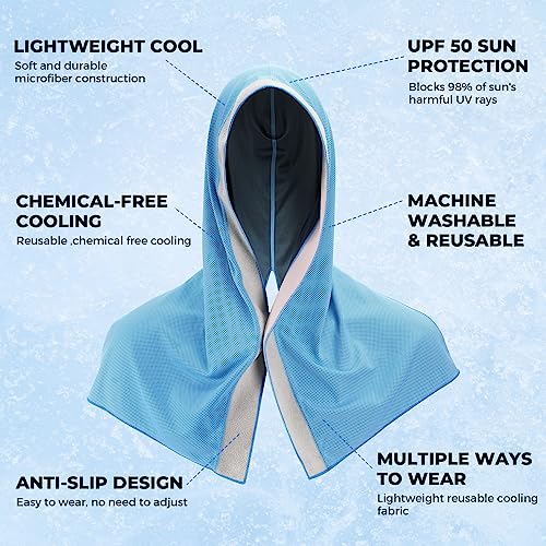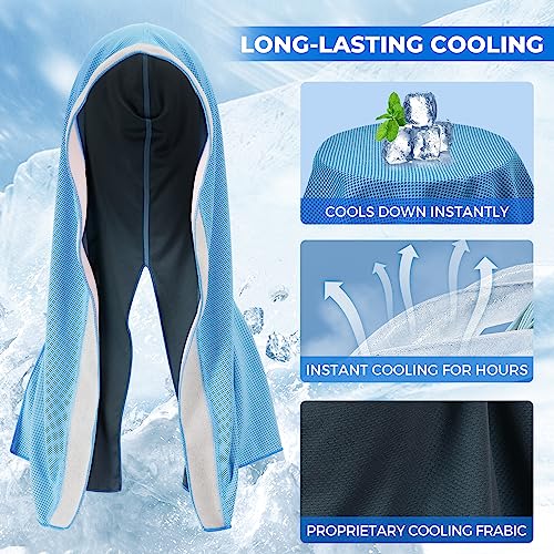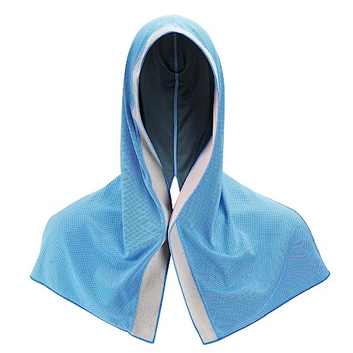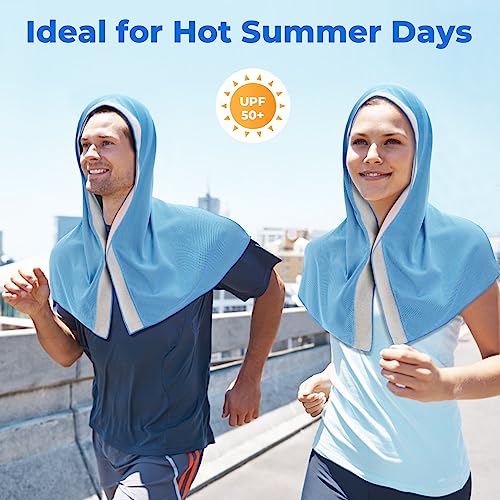 Sukeen Cooling Hoodie Towel, Lightweight Cooling Towels for Neck and Face with Sticky Edge, Cooling Neck Wraps to Cool you Down, Sport Gym Cooling Towels for Hot Weather, Sky Blue